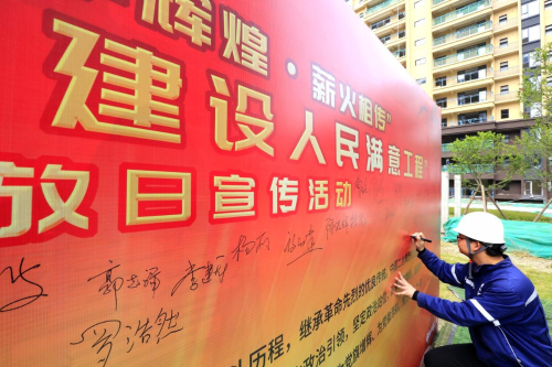 在辦實(shí)事、開新局環(huán)節(jié),項(xiàng)目全體黨員在黨旗下重溫入黨誓詞,表示要踐行長(zhǎng)征精神,建設(shè)人民滿意工程,更加堅(jiān)定作為一名共產(chǎn)黨員的理想信念;活動(dòng)中,中國(guó)二冶黨群工作部向黨員突擊隊(duì)和青年突擊隊(duì)授旗,各方代表表達(dá)了“踐行初心使命,認(rèn)真履職盡責(zé)”的決心;全體職工簽下請(qǐng)戰(zhàn)書,紛紛表示將繼續(xù)充分發(fā)揚(yáng)“一天也不耽誤,一天也不懈怠”的中冶精神,以求真務(wù)實(shí)、開拓創(chuàng)新的精神,把全部力量凝聚到項(xiàng)目建設(shè)中來,向成都市人民交出一份滿意的答卷,隨后,各方代表圍繞安全環(huán)保、項(xiàng)目建設(shè)、工程質(zhì)量、工程進(jìn)度等情況進(jìn)行充分探討,對(duì)中國(guó)二冶董家埂社區(qū)工程的建設(shè)亮點(diǎn)進(jìn)行深入了解。
