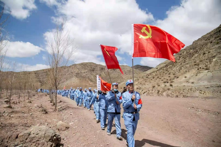 在大青山作戰司令部,大家面對黨旗和團旗,莊嚴宣誓,在濃厚的儀式氛圍中,堅定對黨忠誠的信念;在紀念館,一個個鮮活生動、印象深刻的歷史人物與事件,使大家重溫歷史,牢記初心使命;在“行軍”路上,大風陣陣,道路崎嶇,大家引吭高歌,一首首紅色歌曲,升華了對黨和國家的深厚情感;在終點順利“會師”,感受歷經磨難后勝利的喜悅。