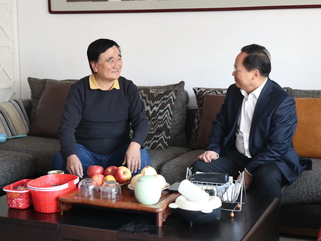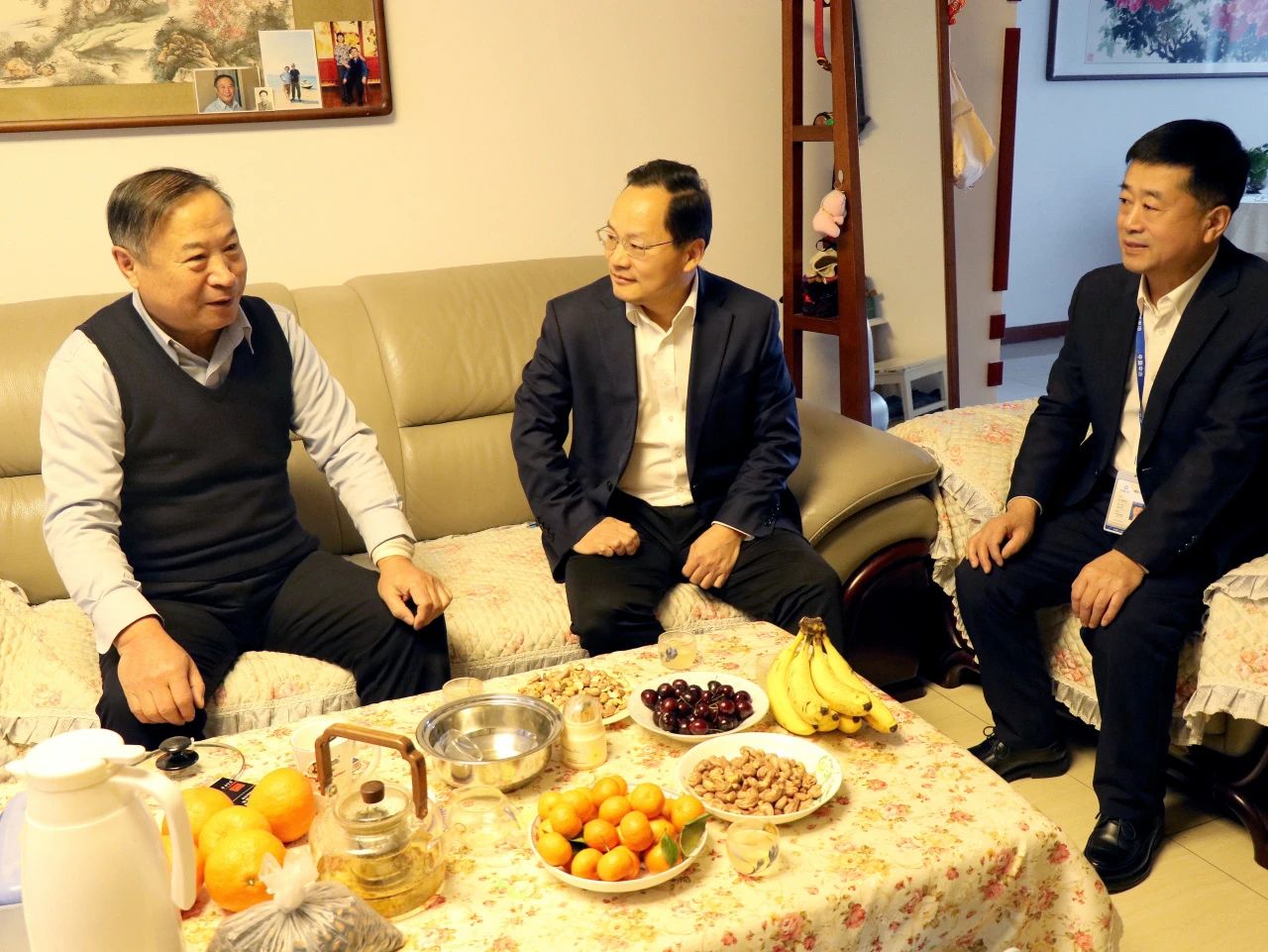 在慰問退休老領(lǐng)導(dǎo)王建欣、王定潔時(shí),李海關(guān)切地了解了他們的身體狀況,并介紹了公司2024年取得的經(jīng)營成績和今后一段時(shí)期的工作計(jì)劃。李海表示,老干部們的經(jīng)驗(yàn)是公司的寶貴財(cái)富,希望他們能夠繼續(xù)發(fā)揮余熱,在頤養(yǎng)天年的同時(shí),持續(xù)關(guān)注和支持企業(yè)發(fā)展,為公司高質(zhì)量發(fā)展建言獻(xiàn)策。