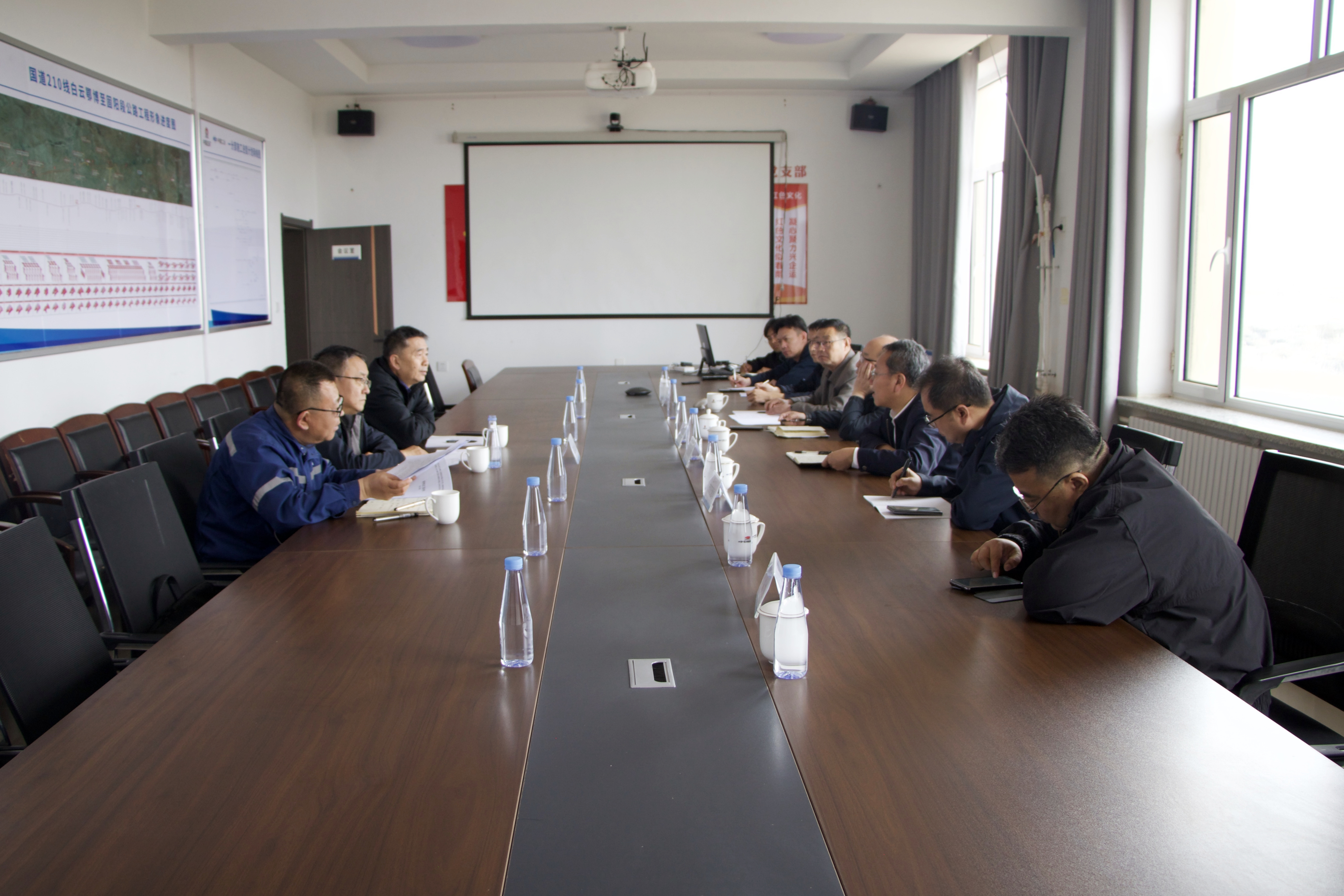 雷殿軍一行沿線先后深入項(xiàng)目K170、K166場站,實(shí)地察看建設(shè)進(jìn)度、安全生產(chǎn)標(biāo)準(zhǔn)化落實(shí)及人員、設(shè)備配置等情況。針對(duì)今年來多次遭遇大風(fēng)沙塵等極端天氣對(duì)施工進(jìn)度的影響,雷殿軍詳細(xì)詢問了項(xiàng)目部制定應(yīng)急預(yù)案及工序銜接保障措施等情況,并與現(xiàn)場管理人員深入交流。在隨后召開的項(xiàng)目建設(shè)推進(jìn)會(huì)上,雷殿軍強(qiáng)調(diào),國道210線白固公路項(xiàng)目作為包頭市重點(diǎn)交通工程,對(duì)完善區(qū)域路網(wǎng)、促進(jìn)民生發(fā)展具有重要意義。他要求,項(xiàng)目團(tuán)隊(duì)結(jié)合實(shí)際科學(xué)編制施工計(jì)劃,統(tǒng)籌調(diào)配作業(yè)隊(duì)伍、物資設(shè)備和機(jī)械車輛等資源,在確保安全、質(zhì)量的前提下突破工期瓶頸,扎實(shí)推動(dòng)各項(xiàng)工作落實(shí)落細(xì),打造經(jīng)得起檢驗(yàn)的標(biāo)桿工程。