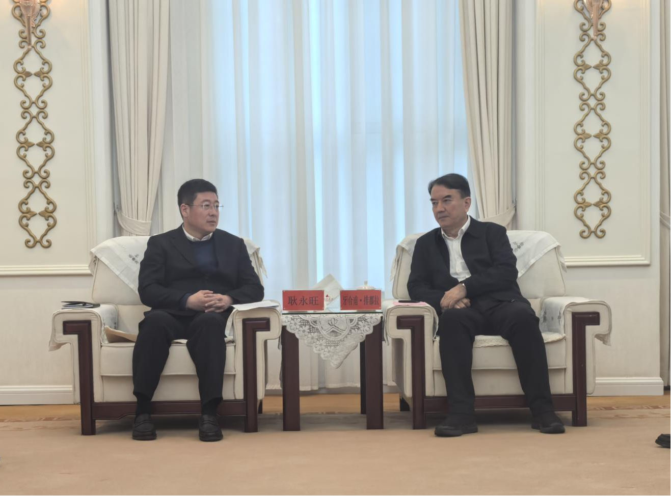 牙合甫·排都拉對耿永旺一行到訪表示歡迎,并詳細介紹了烏魯木齊市的發展優勢、發展布局及相關政策支持,期待雙方能夠進一步深化戰略合作,著力推動雙方合作不斷走深走實。